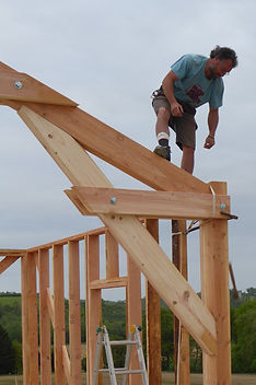 Durant ma vie de charpentier, j’ai eu la chance de réaliser des ouvrages de tous types, de la charpente à la couverture, de la maison neuve pavillonnaire classique ou en ossature bois, de la restauration de diverses toitures de toutes tailles, à la mise en œuvre de maison d’architecte avec leurs méandres de toitures biscornues, mais aussi le façonnage et le levage de hangars agricoles, ou des charpentes de grandes envergures telles que des charpentes de complexe nautique, de salle des fêtes ou de médiathèque, avec leur couverture, leurs murs en ossature bois et leur bardage.